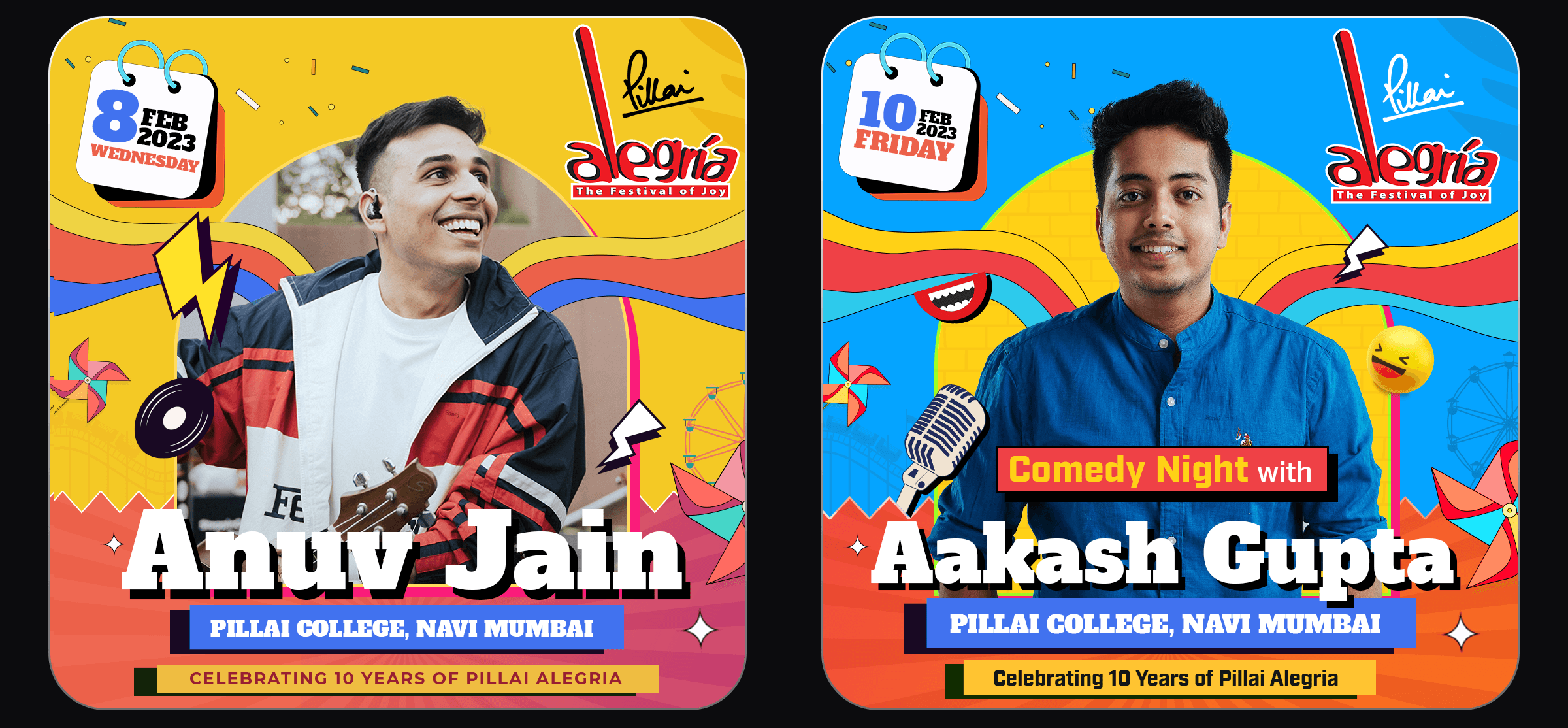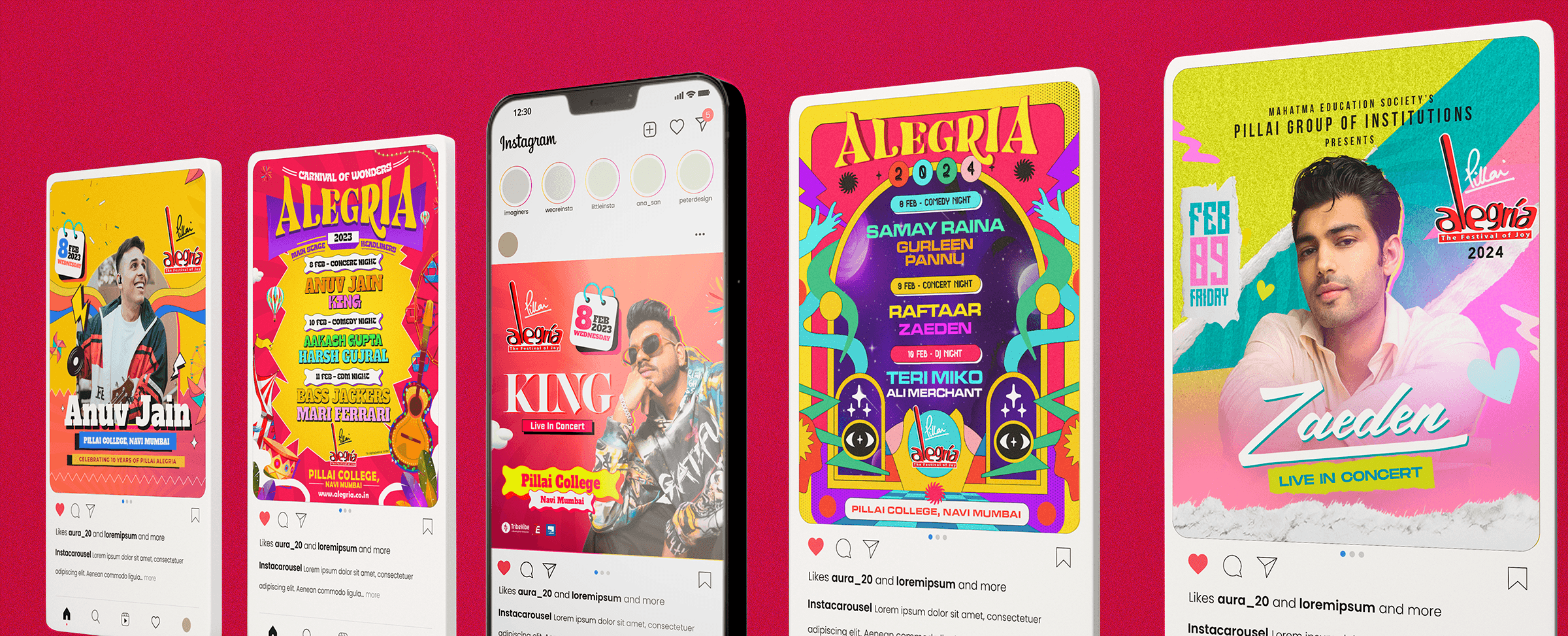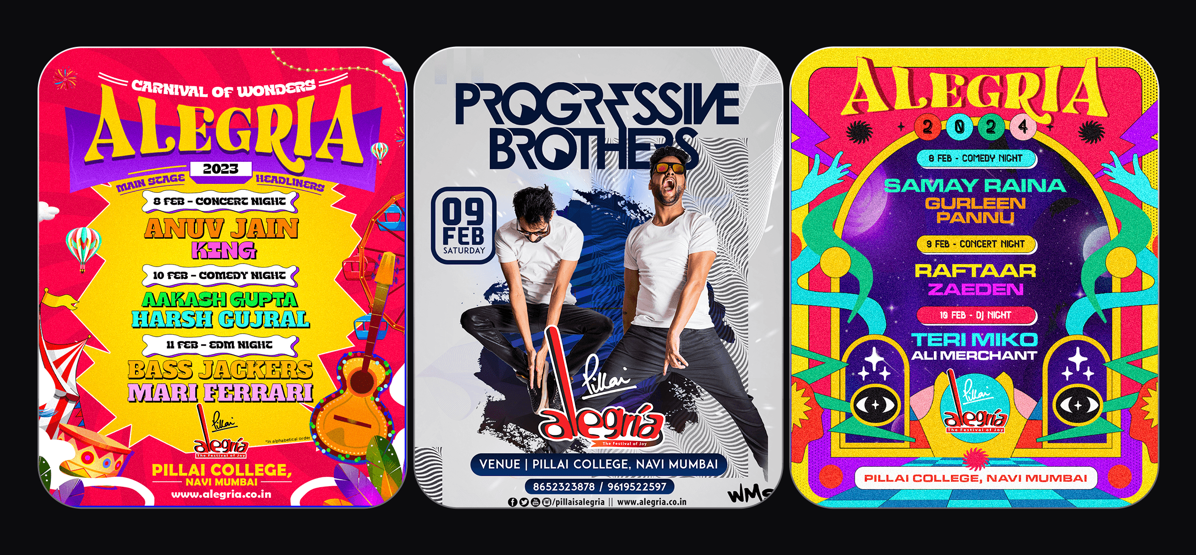 As the Design Head for Alegria - The Festival of Joy, one of India's biggest college festivals, my role was to oversee and execute a vast array of large-scale design projects. This encompassed everything from creating captivating stage backdrops and dynamic LED displays to designing impactful banners, hoardings, and promotional materials. Each element was crafted with precision to elevate the festival atmosphere and connect with a diverse audience, ensuring that every design component played a crucial role in enhancing the overall festival experience.