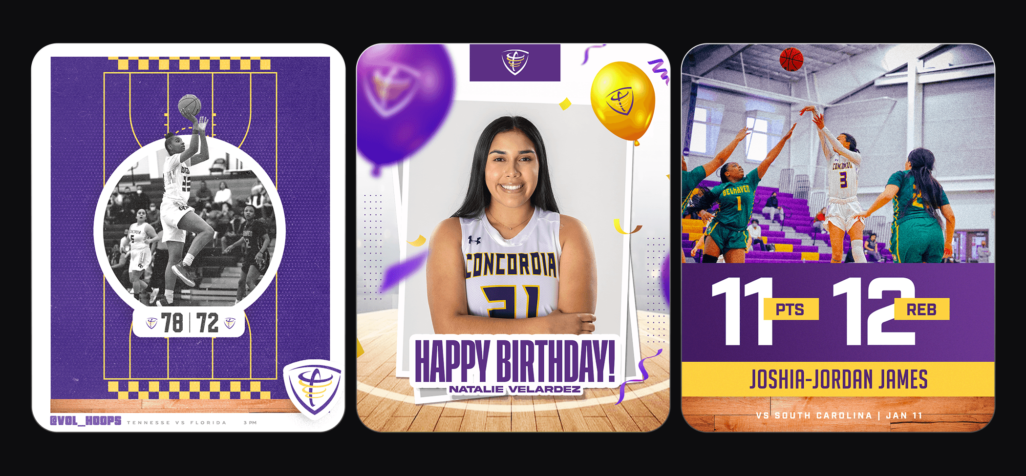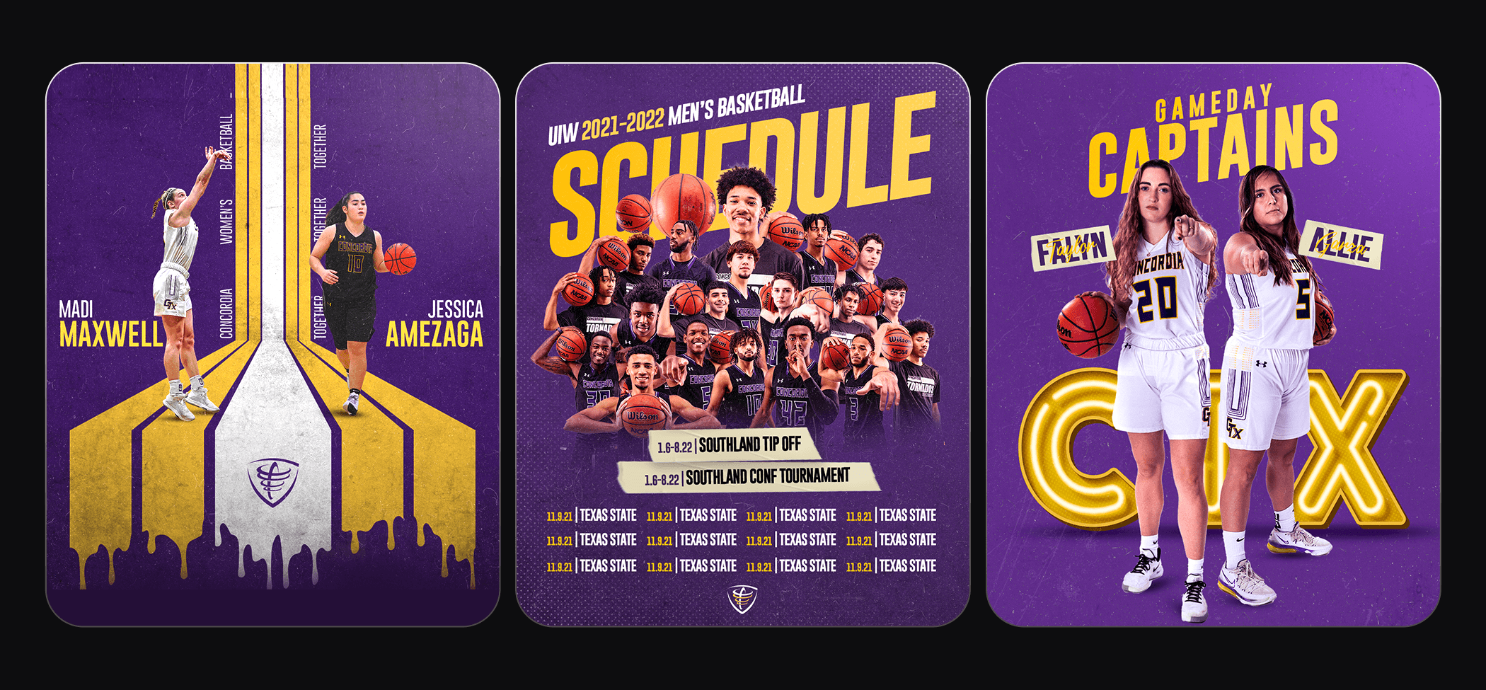 For Concordia University, Texas, and Rose-Hulman Institute of Technology, Indiana, among other colleges, I created a range of designs tailored to their sports divisions. These designs included social media graphics, print materials, and more, all crafted to reflect the unique spirit and identity of each institution. Through these projects, I demonstrated my ability to adapt my design style to meet specific client needs while maintaining a high level of creativity and professionalism.